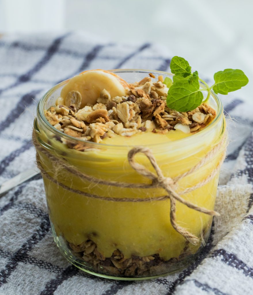 4. Oats Mango and coconut breakfast jar: A tropical twist with sweetness of fresh mangoes!
